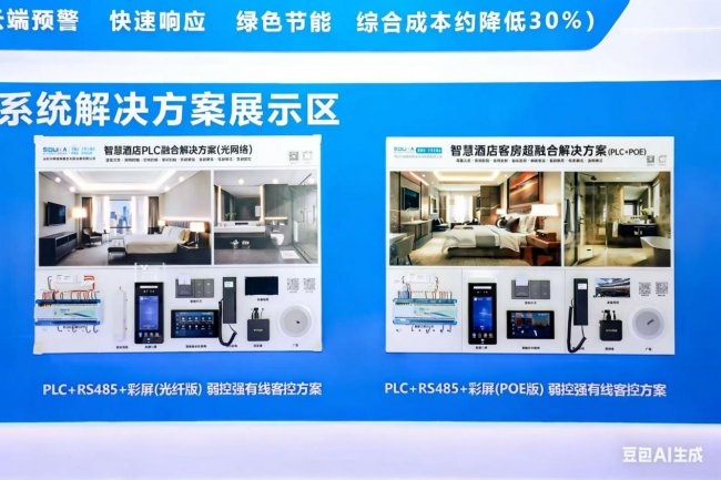 在核心技术突破层面,鼎盛威展出的 PLC 融合方案成为展会现场的核心亮点。该方案攻克了传统弱电布线改造成本高、对酒店原有建筑结构破坏大的行业难题,搭载企业自主研发的高性能电力线载波 PLC + 中控屏技术,无需额外铺设大量管线,可直接利用酒店现有电线传输信号,彻底突破了传统弱电改造 “布线难、成本高、周期长” 的发展瓶颈,尤其适配酒店存量改造的实际场景需求,为行业智能化升级提供了高性价比解决方案。