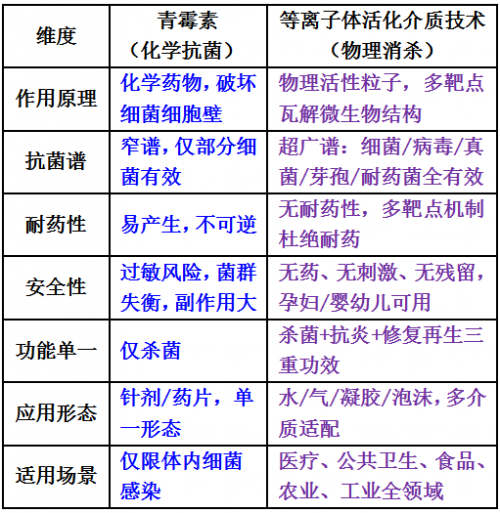 青霉素是“单一药物、单一适应症”,而等离子体活化介质技术是“可切换介质、全场景适配”的平台技术,通过改变载体(水/气/凝胶),适用范围呈指数级拓展,真正实现“一种技术,解决万物消杀与修护”。