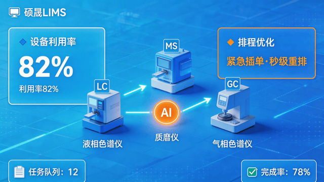 AI智能体是这次升级的核心引擎之一。硕晟LIMS内置的多目标优化算法,能够实时分析设备负载、人员技能与任务优先级。在某化工实验室的应用中,设备利用率从45%提升至82%,紧急任务响应时间从4小时压缩至90分钟。当检测任务突增时,AI智能体可启动“熔断机制”,暂停非紧急任务并重组流程,系统会自动避开设备维护窗口期,确保任务排程零冲突。